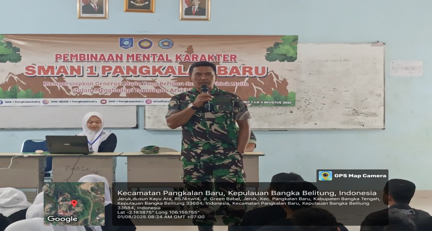 Materi pendidikan karakter disampaikan oleh kepala sekolah SMAN 1 Pangkalan Baru ibu Asrobianti,S.Pd,MM dan TIm dari Korem Garuda Jaya 045
