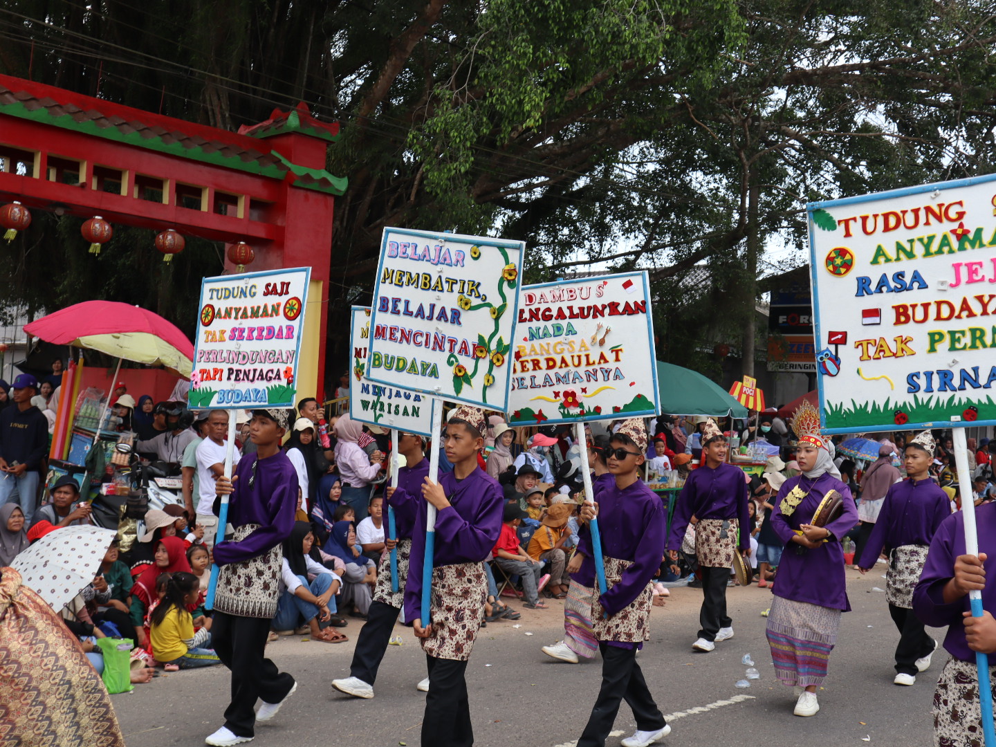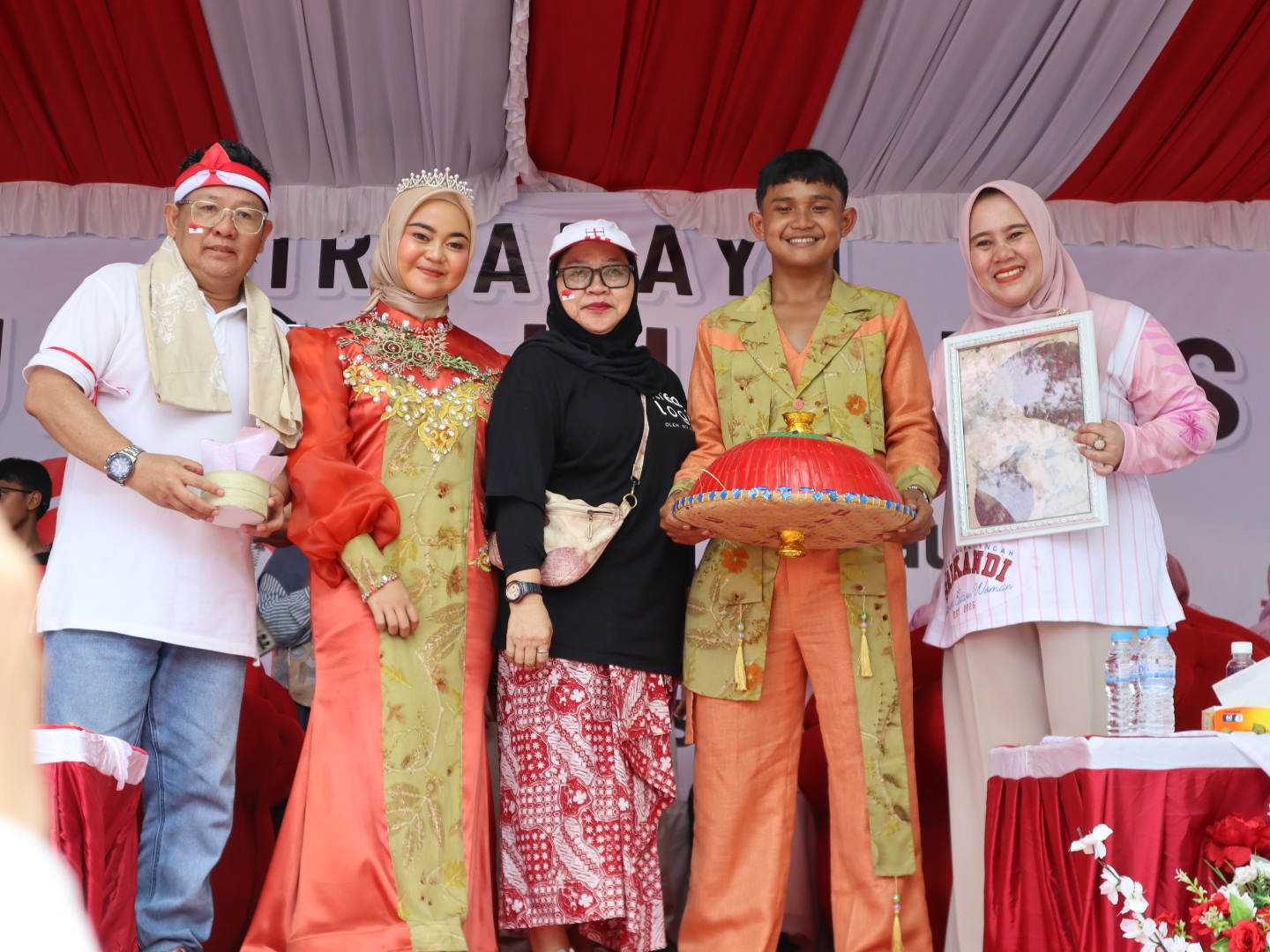 Di sepanjang rute karnaval, ribuan warga menyambut meriah, terpesona dengan miniatur rumah adat, tudung saji raksasa, hingga kostum unik hasil karya siswa. Di panggung kehormatan, mereka menyerahkan souvenir kain ecoprint dan gantungan kunci tudung saji kepada Bupati Bangka Tengah, Algafri Rahman, sebagai bentuk apresiasi budaya.
