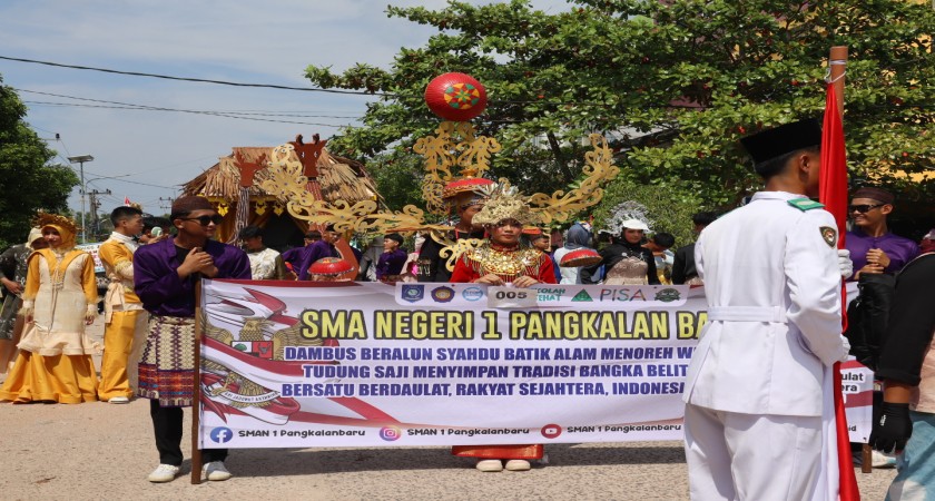 SMAN 1 Pangkalan Baru kembali menunjukkan kreativitasnya dalam Lomba Karnaval Tingkat Kabupaten Bangka Tengah, Kamis (28/8/2025) di Koba. Sebanyak 45 siswa tampil penuh semangat, meski harus menempuh perjalanan jauh dan cuaca panas menyengat.